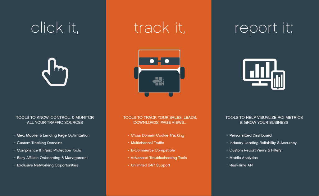 Affiliate tracking software that groups campaigns by type and success (or lack of).